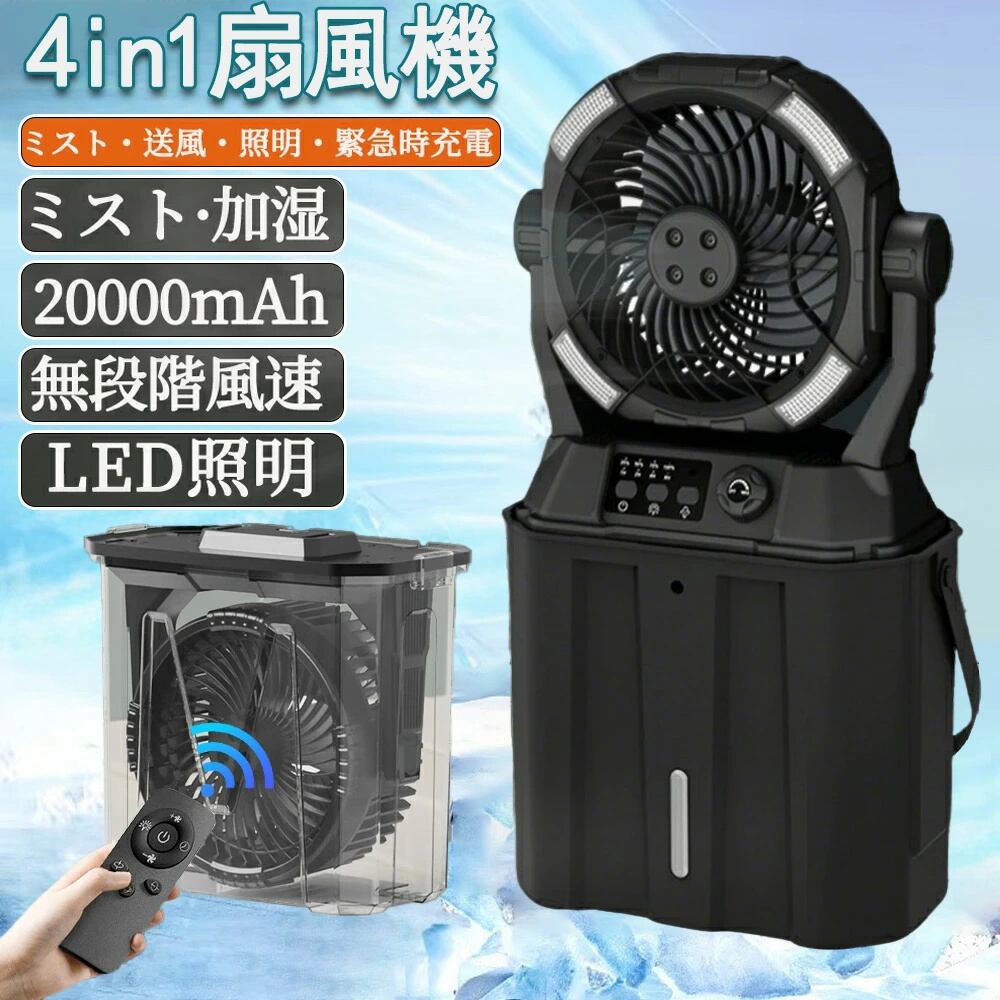 【水・氷入れる2025業界初登場】キャンプ 扇風機 加湿・照明・20000mAh/ミストファン アウトドア 扇風機 冷風機 卓上 吊り下げ LED照明 無段階風速 緊急時充電 噴霧機能 アウトドア 50時間連続使用 分離式6L水タンク 静音 強力送風 ポータブル 省エネ 防災