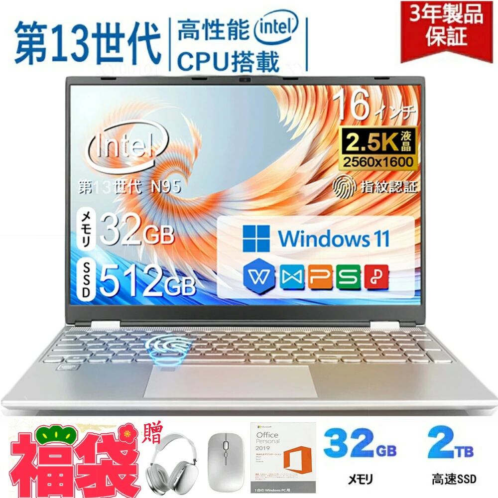 【三年保証★バレンタイン】ノートパソコン Office付き 第13世代CPU ゲーミングpc CoreN95 i5 i7 i9 薄型ノートPC Windows11 高性能メモリ DDR4 32GB 512GB SSD カメラ内蔵 10キー搭載 指紋認証 miniHDMI 5G 無線WIFI Bluetooth MS Office 2560 x 1600 16:9 IPS広視野角 福袋