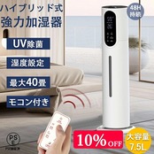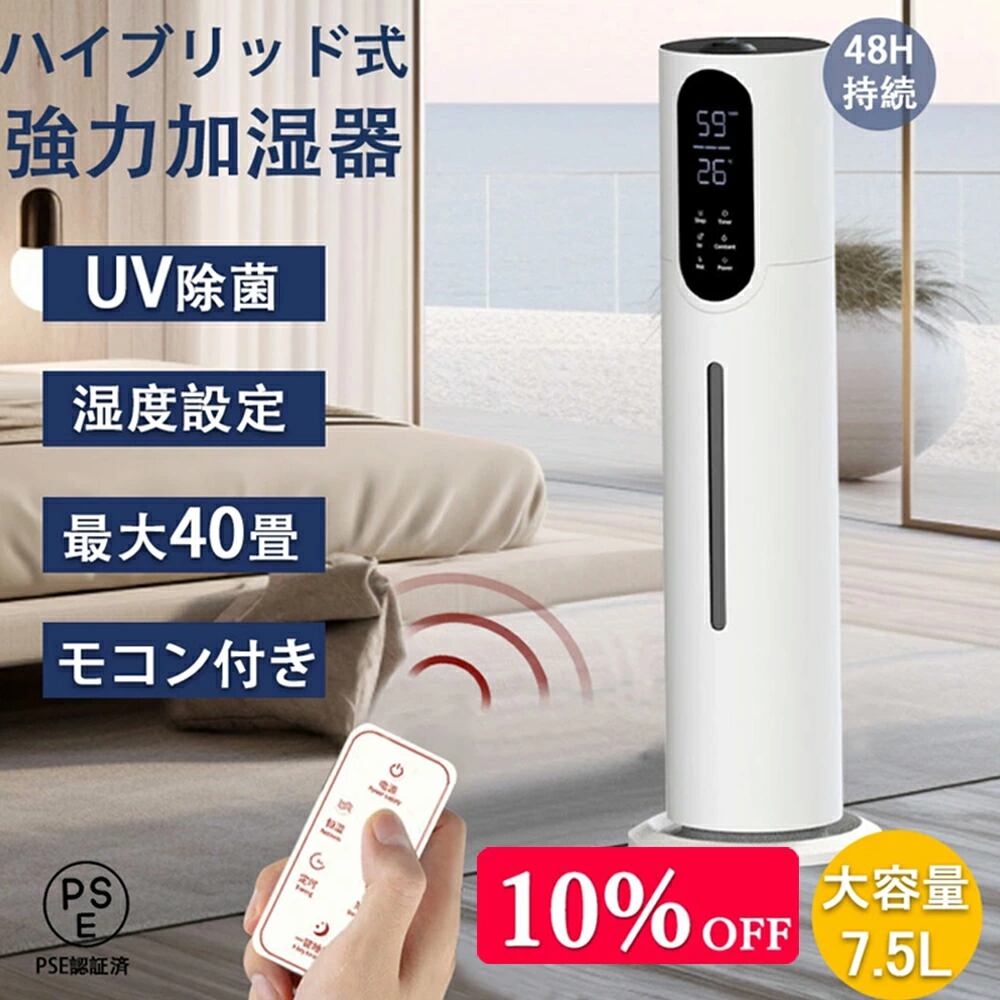 加湿器 タワー型 大容量 7.5L 空気清浄機 UV除菌ライト&湿度設定 超音波加湿器 出し口360°回転 上から給水 空焚き防止 40畳対応 48H連続加湿 タイマー付き 静音 次亜塩素酸水対応 脱臭 寝室 家庭用