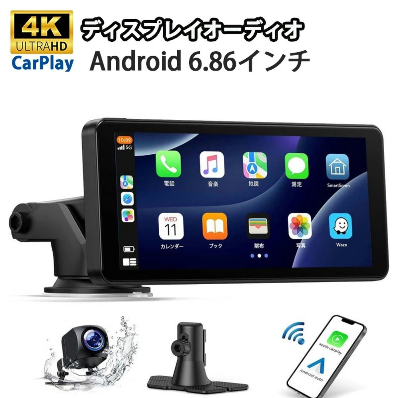 オーディオ一体型ナビ 6.86インチIPSタッチスクリーン Android Autoディスプレイオーディオ カーナビ バックカメラ付き CarPlay&Androidミラーリング carplay